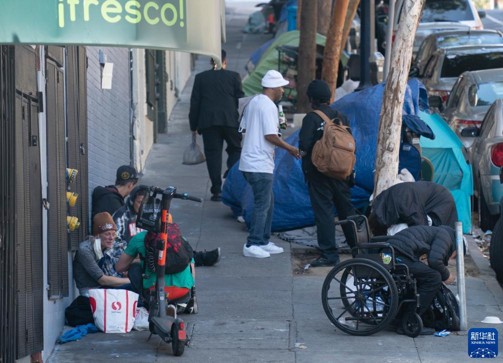 這是8月18日在美國加州舊金山市區(qū)的街道上拍攝的無家可歸者。