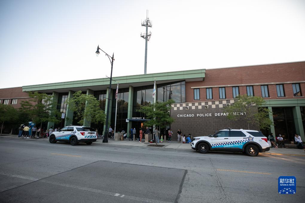 8月17日,移民聚集在美國伊利諾伊州芝加哥第9區(qū)警察局。