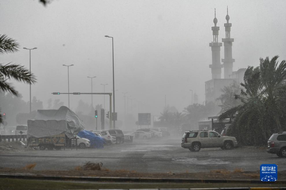 當(dāng)日,科威特部分地區(qū)遭遇極端天氣,強(qiáng)風(fēng)和暴雨給當(dāng)?shù)亟煌◣碛绊懀斐韶?cái)產(chǎn)損失。