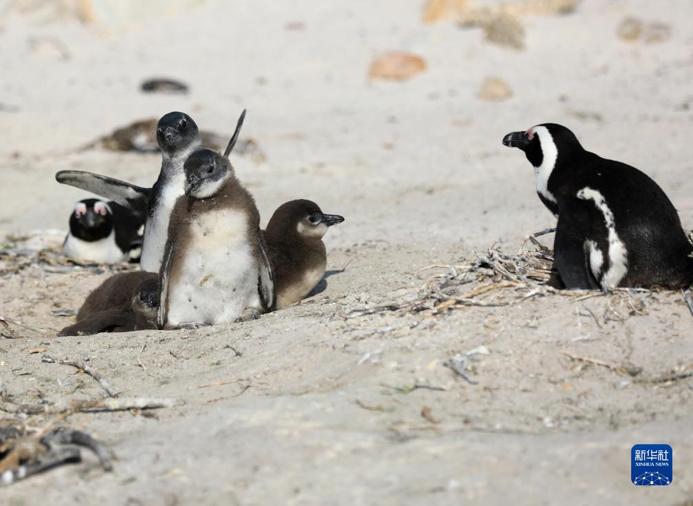 這是8月12日在南非西蒙鎮的博爾德斯海灘上拍攝的非洲企鵝。
