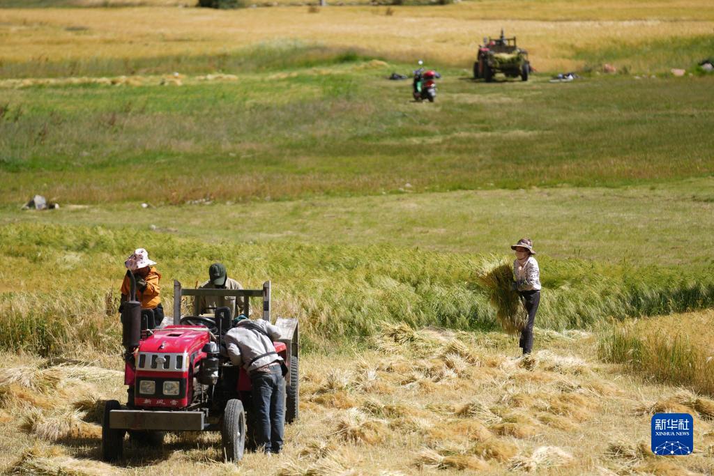 目前,西藏各地進入秋收時節。西藏昌都市邊壩縣的農民抓緊收割青稞和牧草,確保顆粒歸倉。
