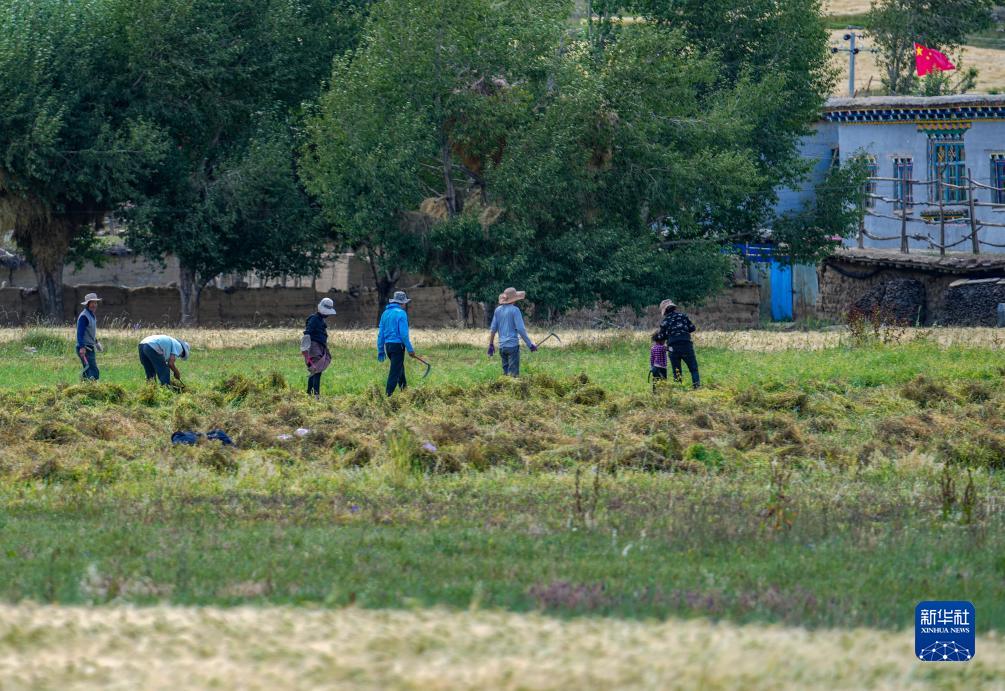 目前,西藏各地進入秋收時節。西藏昌都市邊壩縣的農民抓緊收割青稞和牧草,確保顆粒歸倉。