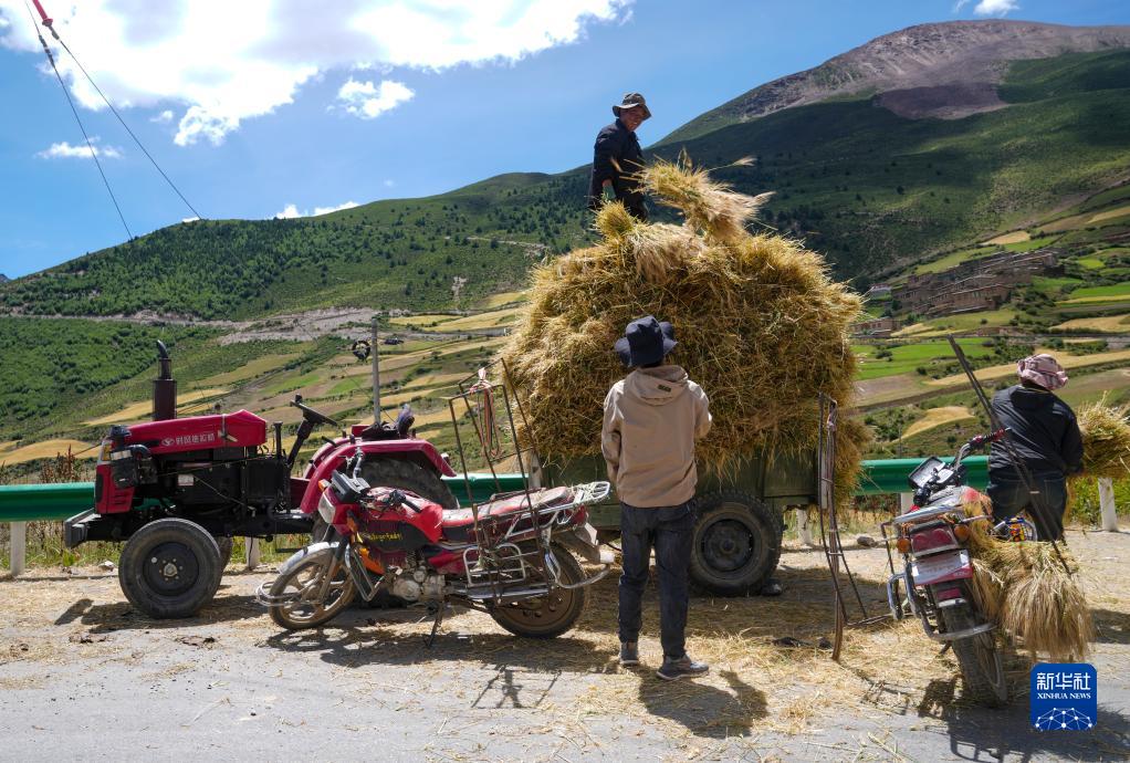 目前,西藏各地進入秋收時節。西藏昌都市邊壩縣的農民抓緊收割青稞和牧草,確保顆粒歸倉。