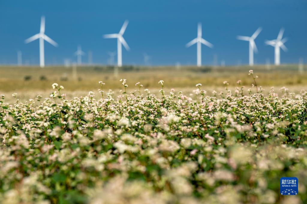 鹽池縣境內一處蕎麥花開放(8月18日攝)。
