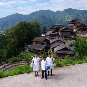1963年出生的侗族漢子吳昌喜,1998年成為忠誠鎮定弄村的一名村醫,一干就是20多年。受到父親吳昌喜的言傳身教,兒子吳濤2009年進入貴陽市衛生學校學習,并在學校結識了現在的妻子項昌會。2013年,吳濤回到老家,成為忠誠鎮盤踅村的一名村醫。項昌會與吳濤結婚后也來到盤踅村生活,協助吳濤做村醫的工作,每天走村串寨上門給群眾服務。后來吳濤調整到忠誠鎮怎丟村做村醫,家里的3個人分別在3個村擔任鄉村醫生。吳昌喜一家這份對行醫薪火相傳的堅守,在苗鄉侗寨傳為美談。