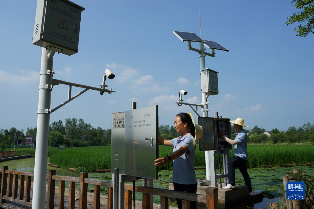 8月18日,在位于安徽省六安市裕安區(qū)的清涼寺分渠灌區(qū)林水寨生態(tài)園,工作人員操作水閘控制稻田水位。