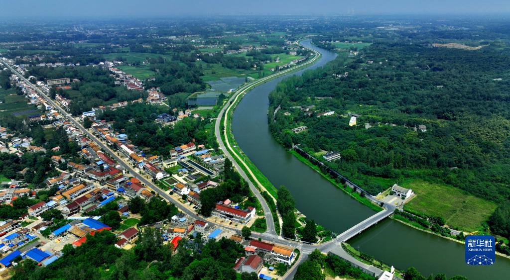 8月18日拍攝的位于安徽省六安市裕安區(qū)的淠河總干渠(無人機照片)。