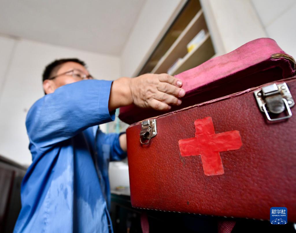 8月15日,肖九林在診所內整理藥箱,準備出診。