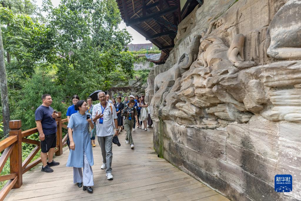 8月19日,嘉賓在大足石刻寶頂山景區(qū)內(nèi)參觀。