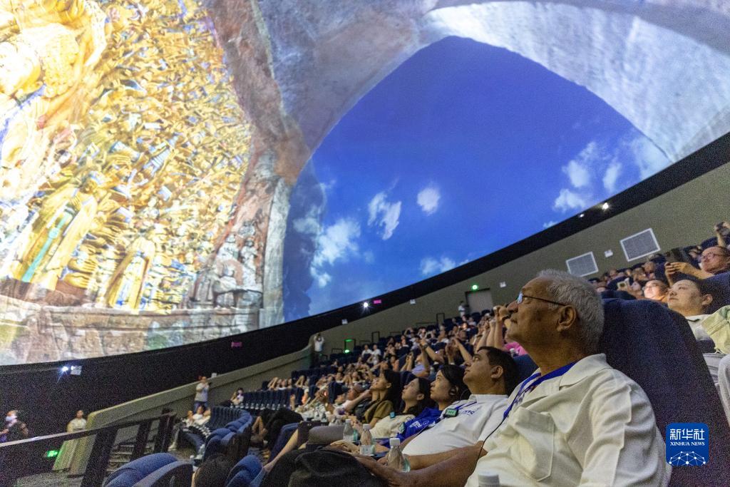 8月19日,嘉賓在重慶市大足區(qū)觀看8K球幕電影《大足石刻》。