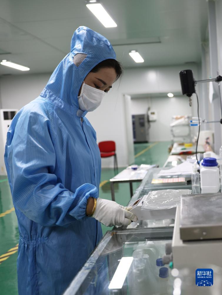 8月19日,工人在涿州市柯林電子產品有限公司散熱冷凝膠車間對樣品進行稱重。