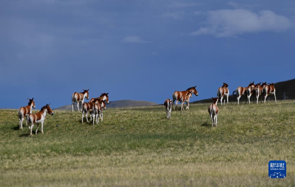 在措勤縣草原上散步的藏野驢(8月18日攝)。