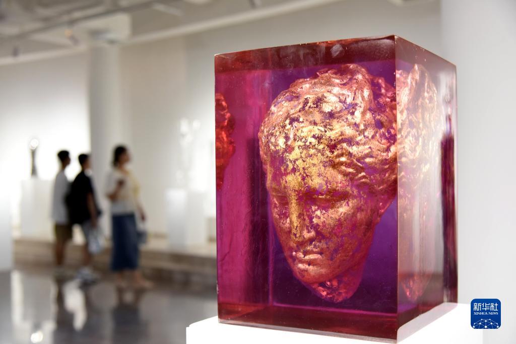 8月19日,觀眾在青島市雕塑館觀展。
