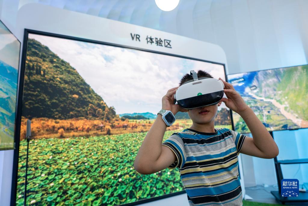 8月18日,一名孩子在第七屆中國—南亞博覽會上體驗VR設備。
