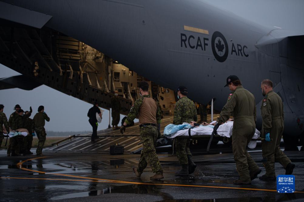 8月18日,加拿大武裝部隊人員在西北地區耶洛奈夫機場轉移病患。