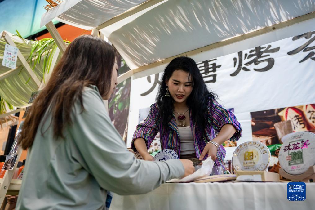 8月17日,展商(右)在第七屆中國(guó)—南亞博覽會(huì)南亞茶葉節(jié)上推介茶葉。