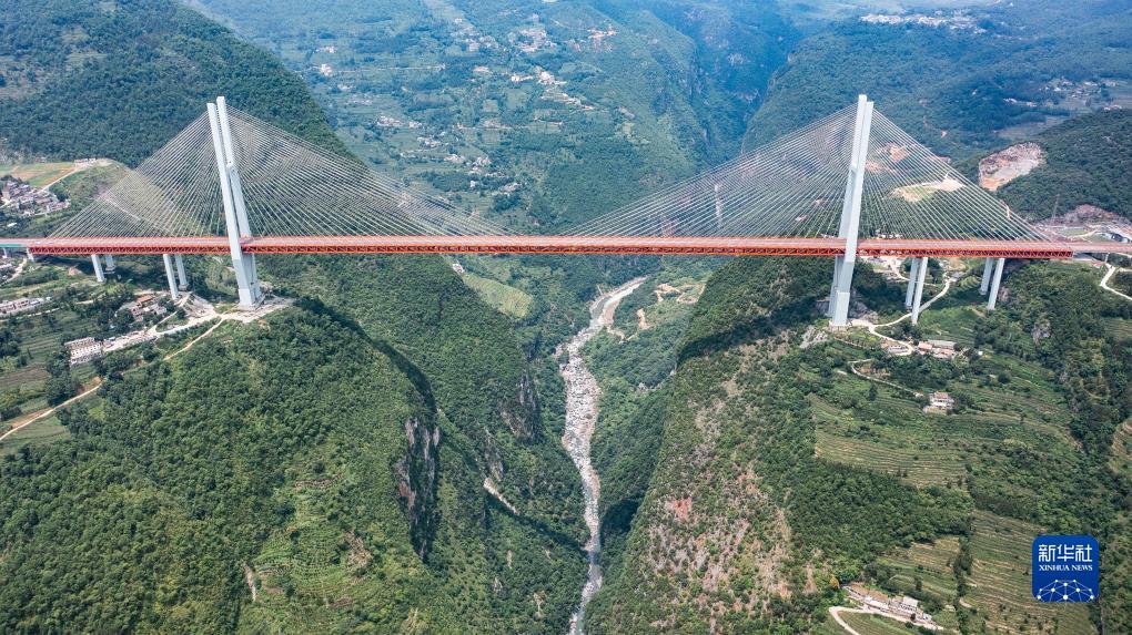 貴州、云南交界處的杭瑞高速北盤江大橋(8月15日攝,無人機照片)。