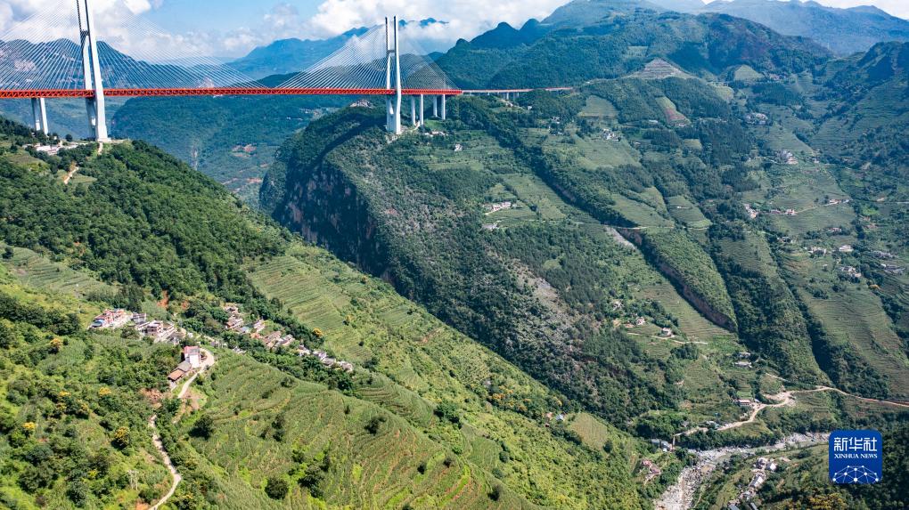 貴州、云南交界處的杭瑞高速北盤(pán)江大橋(8月15日攝,無(wú)人機(jī)照片)。