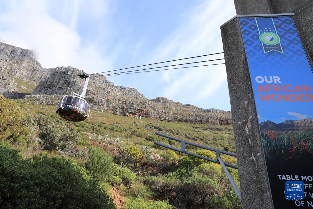 8月12日,游客在南非開普敦乘坐纜車游覽桌山。