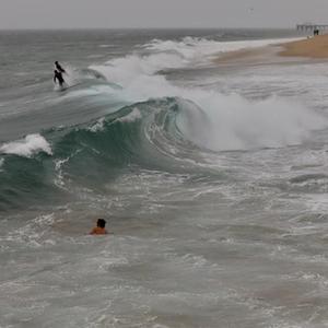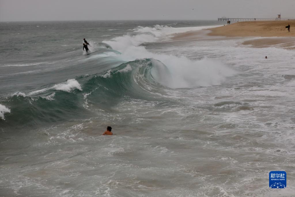 這是8月20日在美國加利福尼亞州紐波特比奇拍攝的海浪。