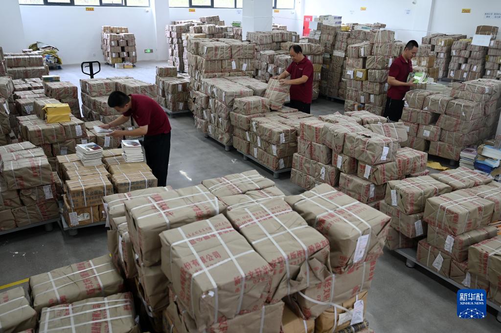 8月21日,四川新華文軒內(nèi)江市東興分公司工作人員在教材倉庫內(nèi)清點整理新學(xué)期教材。