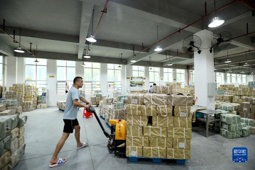 8月21日,在湖南省資興市新華書店教材倉庫內,工作人員在搬運教材。