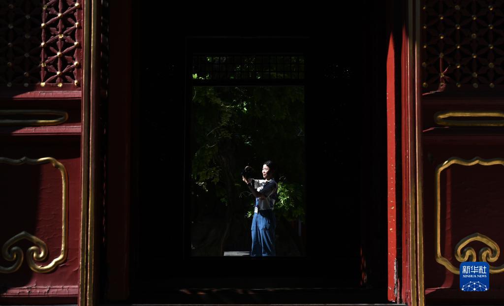 8月21日,香港青年學生張仲倩記錄故宮御花園萬春亭保存現狀。