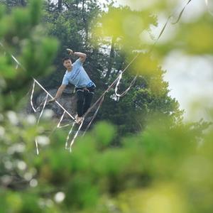 8月21日,參賽選手參加高空扁帶賽。