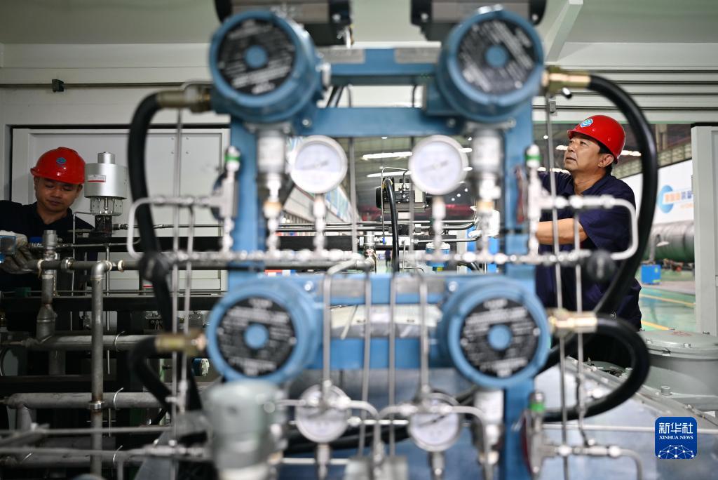 8月21日,工人在唐山市古冶區一家氫能源裝備制造企業生產車間工作。