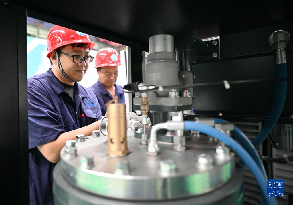 8月21日,工人在唐山市古冶區一家氫能源裝備制造企業生產車間工作。