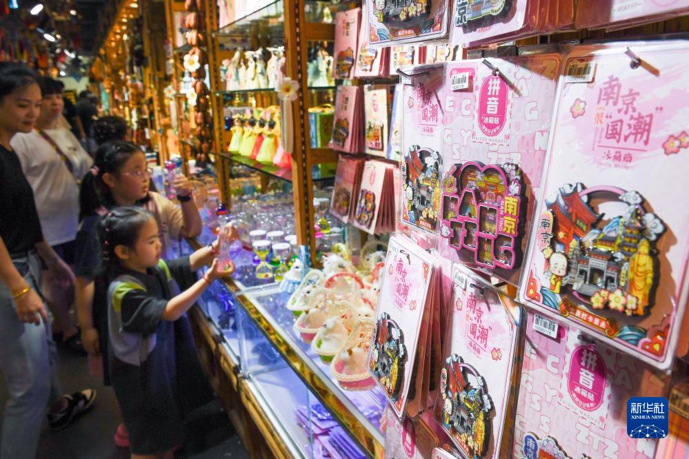 游客在南京夫子廟景區選購紀念品(8月18日攝)。