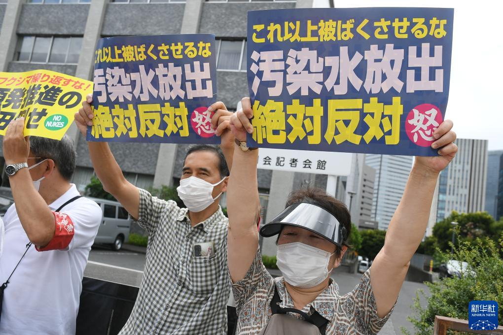 8月22日,日本民眾在東京首相官邸前緊急集會,抗議政府無視民意啟動核污染水排海。
