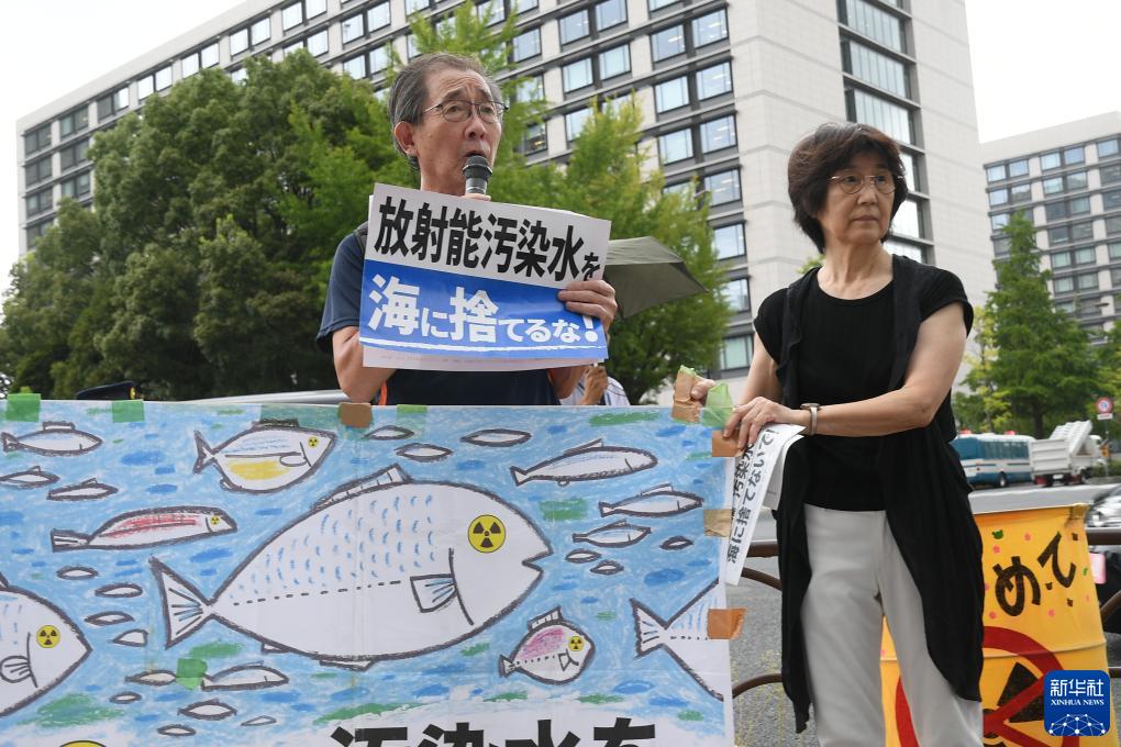 8月22日,日本民眾在東京首相官邸前緊急集會,抗議政府無視民意啟動核污染水排海。
