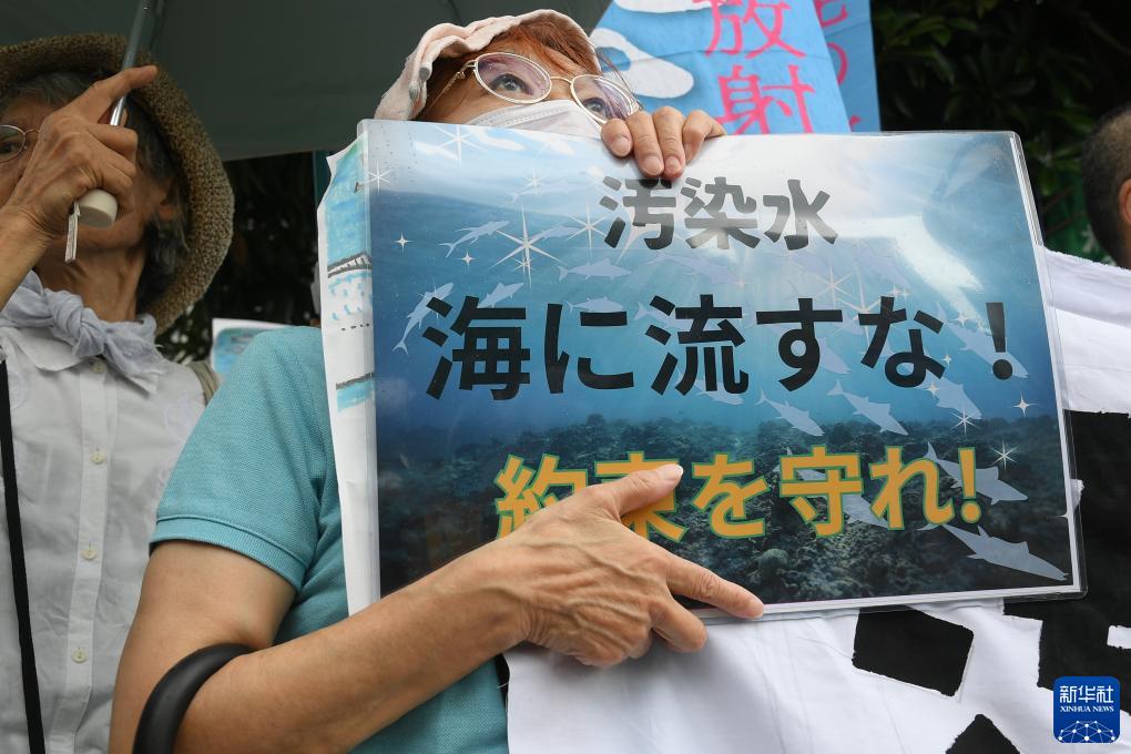 8月22日,日本民眾在東京首相官邸前緊急集會,抗議政府無視民意啟動核污染水排海。