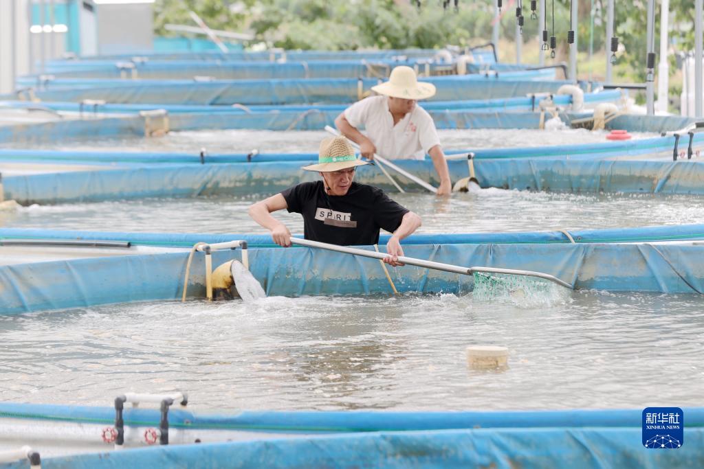 8月22日,在德清縣下渚湖街道和睦村“數字漁倉”養殖基地,工人在進行日常養護作業。