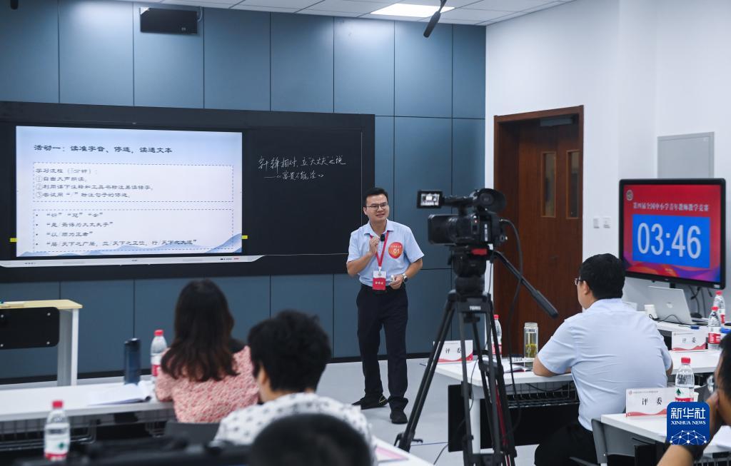 8月22日,中學語文組的一名教師在進行教學展示。