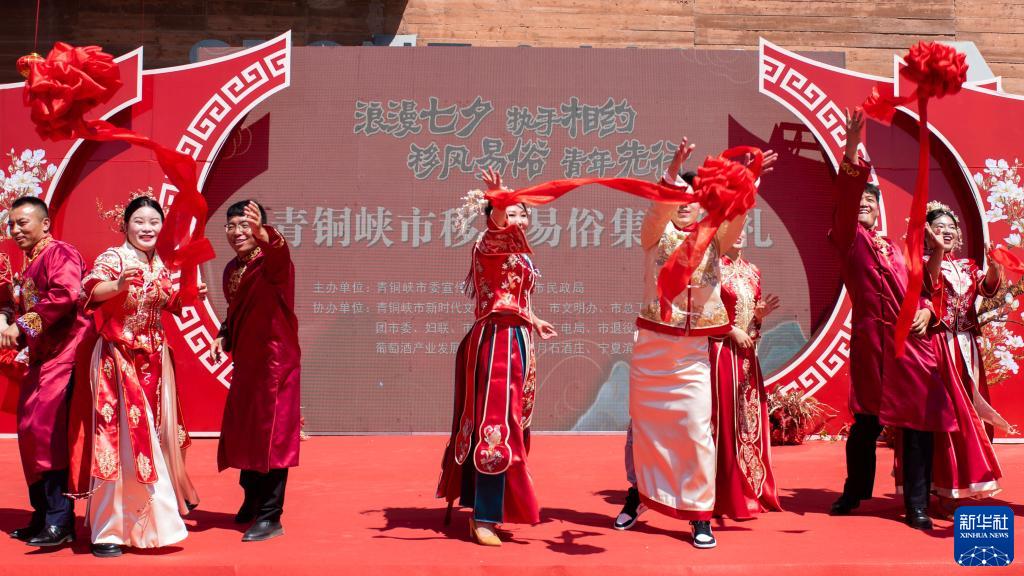 當日是七夕,寧夏青銅峽市舉辦“浪漫七夕執手相約,移風易俗青年先行”青年集體婚禮。