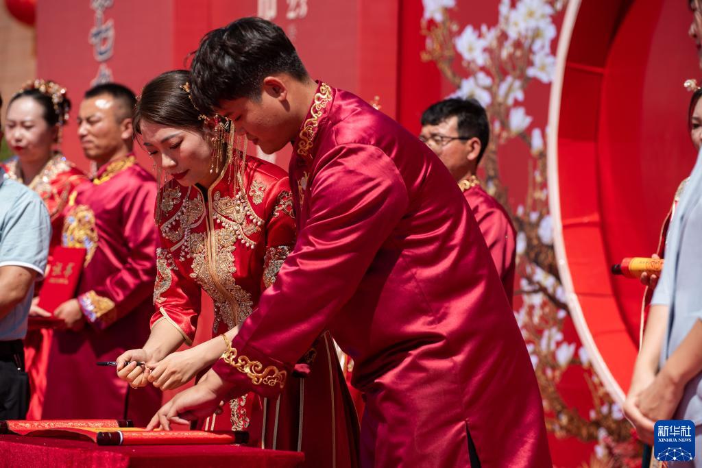 當日是七夕,寧夏青銅峽市舉辦“浪漫七夕執(zhí)手相約,移風易俗青年先行”青年集體婚禮。