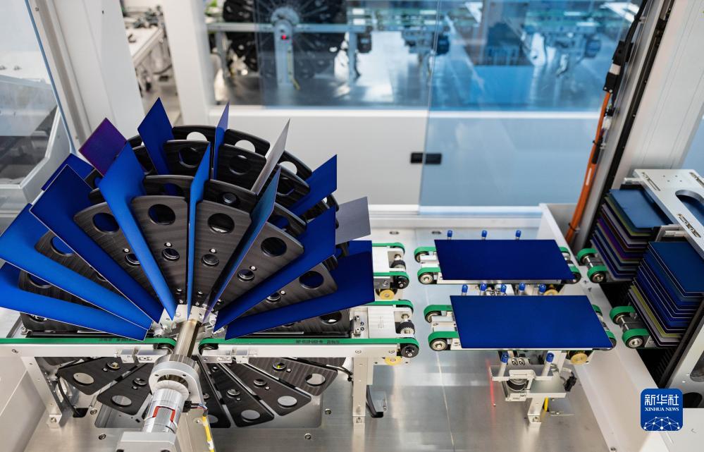 8月22日,在四川省丹棱縣經濟開發區的眉山璉升光伏8GW高效異質結電池項目電池車間,設備對硅片進行加工。