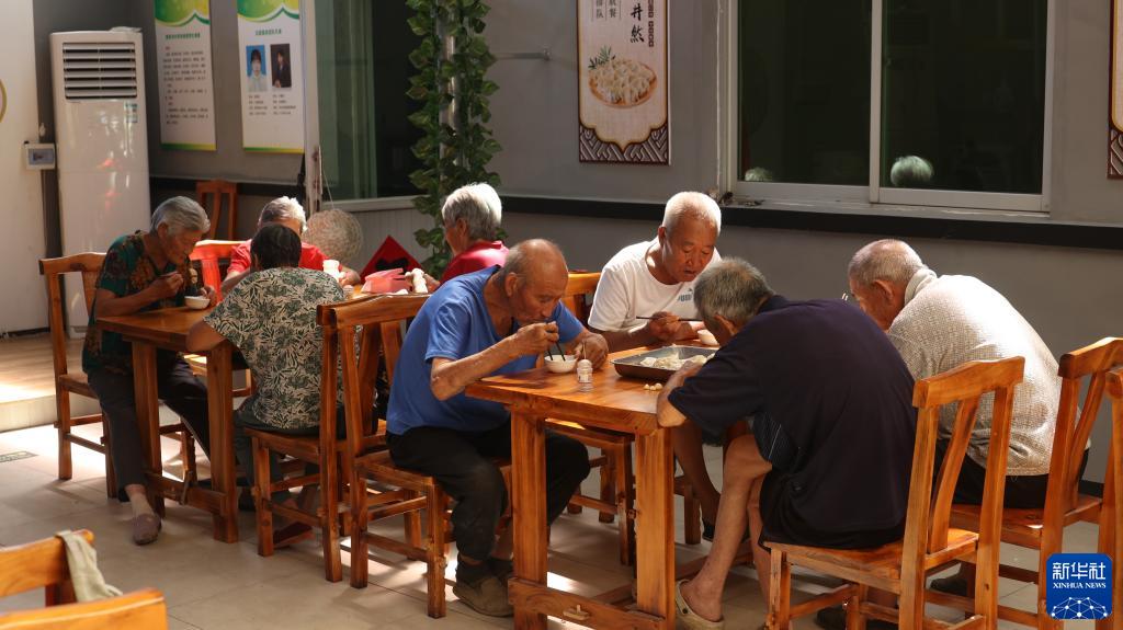 8月22日,老人在青縣曹寺鎮曹寺村的孝老食堂用餐。