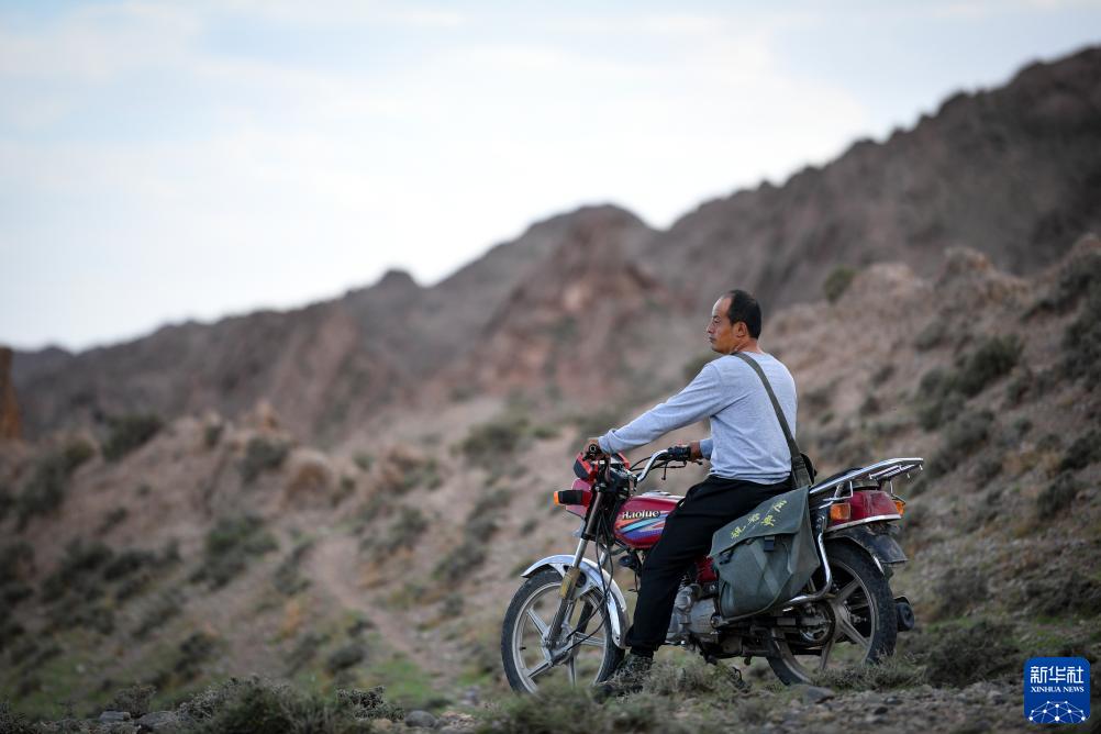 8月20日,董海寧騎摩托車巡查賀蘭山沿線的明長城永寧段。