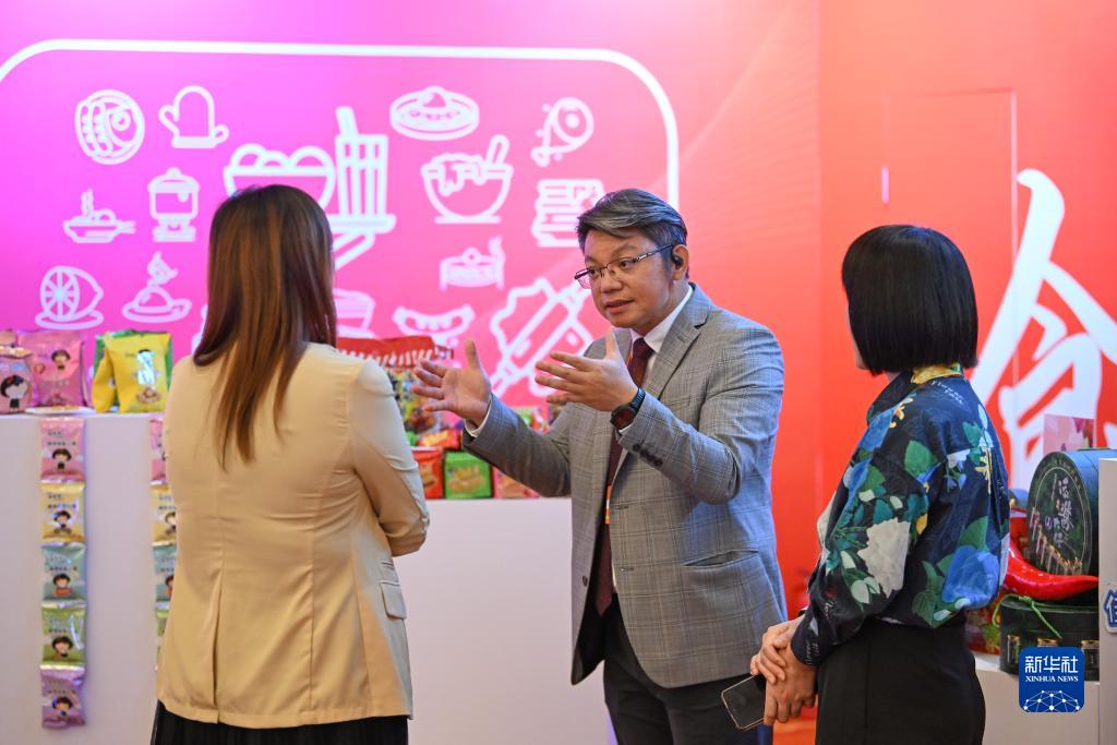 8月22日,嘉賓在2023天津臺企新品采購洽談會上交談。