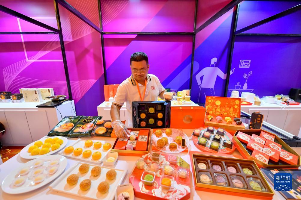 8月22日,參會商在2023天津臺企新品采購洽談會上擺放展品。