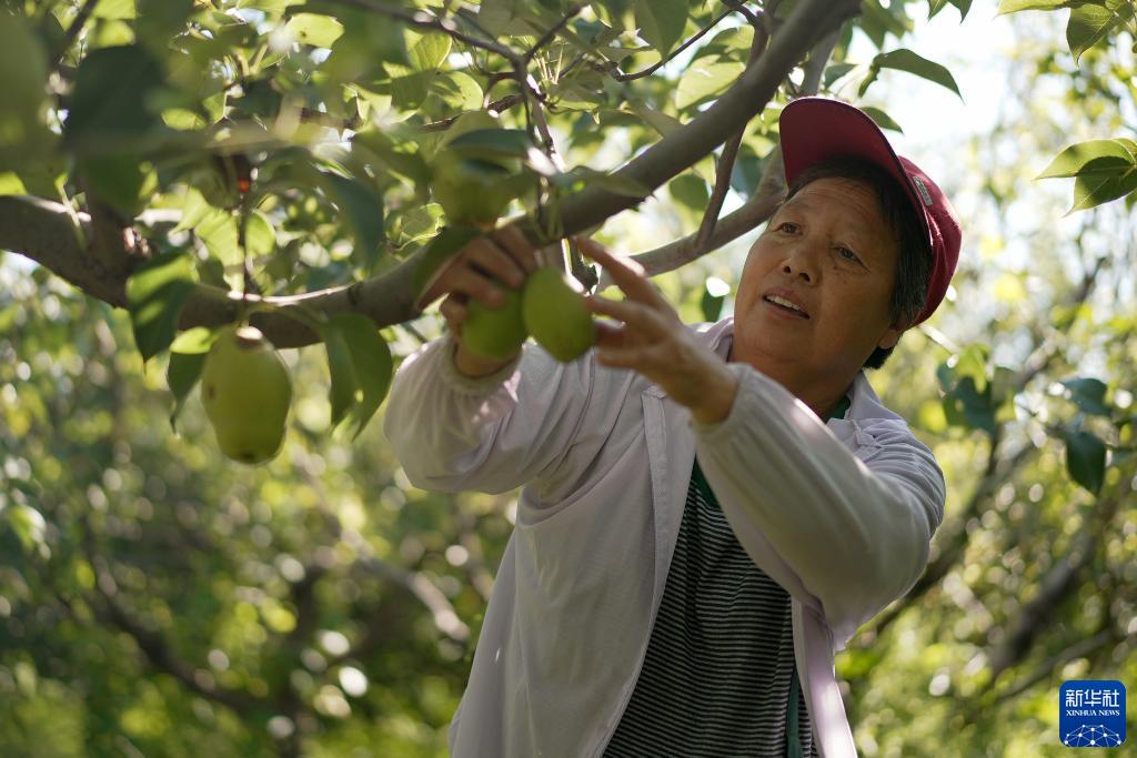 8月22日,在吳橋縣于集鎮北史莊村,村民在采摘紅酥梨。