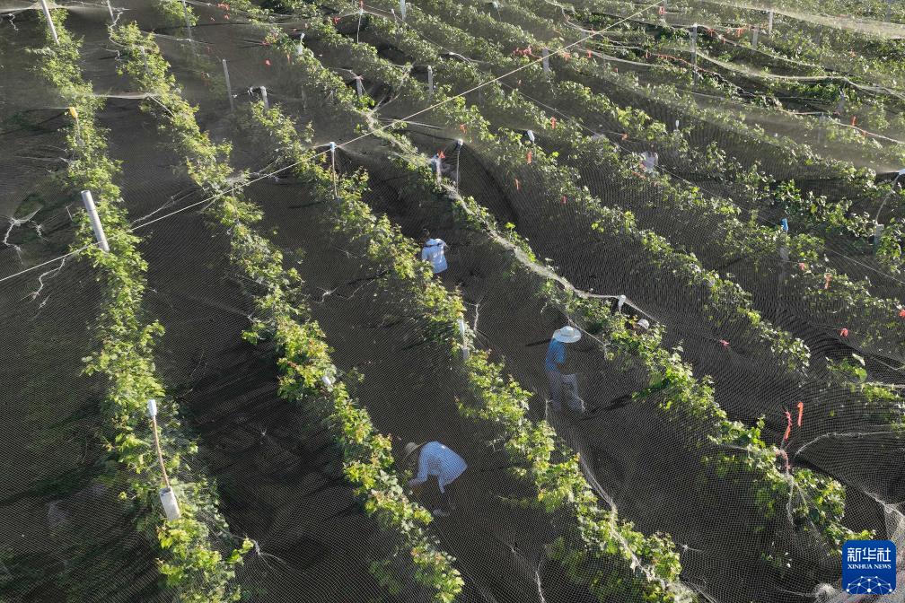 8月22日拍攝的吳橋縣安陵鎮(zhèn)窯廠店村吳橋縣勝彥糧棉種植專業(yè)合作社葡萄園(無人機(jī)照片)。