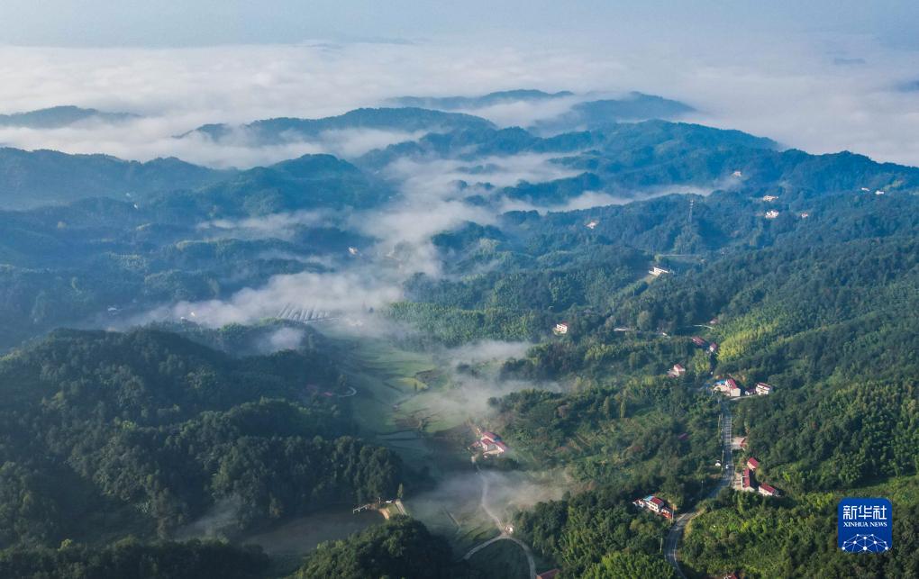 這是8月23日航拍的安徽省六安市霍山縣漫水河鎮(zhèn)附近的云海。