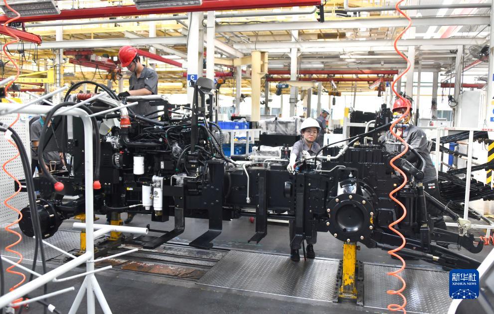 8月22日,在位于山東省濰坊市坊子區(qū)的濰柴雷沃智慧農業(yè)科技股份有限公司,工人在車間組裝生產農機設備。