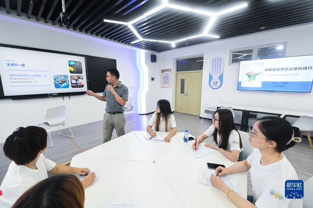 8月23日,導(dǎo)游們在參加“迎亞運(yùn)”旅游外語課程培訓(xùn)。
