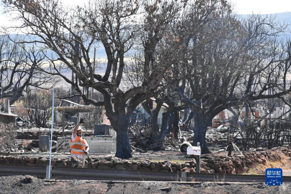 8月22日,工作人員在美國夏威夷州拉海納鎮進行修復工作。