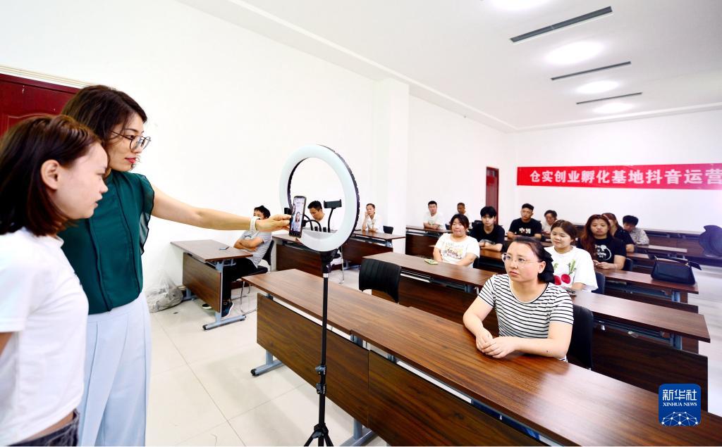 8月23日,學(xué)員(左一)在電商直播培訓(xùn)班上學(xué)習(xí)直播技巧。